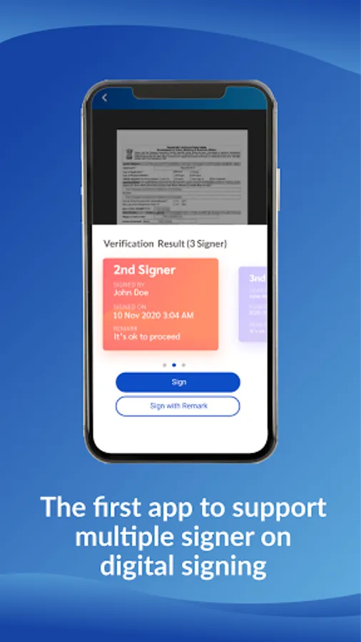 DsonicID provide the best experience in eKYC (electronic Know Your Customer) and document signing. Document to be signed stay with the user phone and only the digest of hashed content would be sent to the cloud for signing purpose. DsonicID and the backend system is designed with private data protection in mind. In a plain way, the signed document is known to the sender and recipient ONLY.