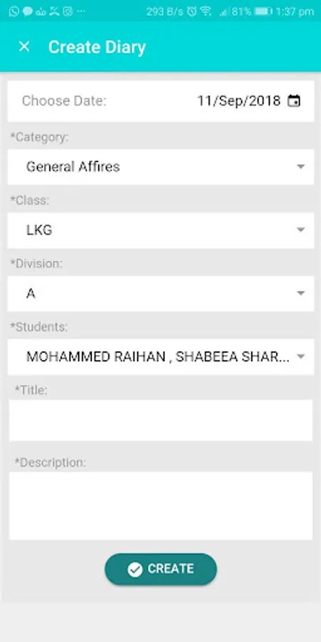 An application for teachers of any school and college to communicate with the parent, teacher to inform their student's academic details and updates which include: