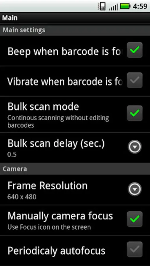 Supports "WiFi Scanner" - sends barcodes on VNC server (Authentication: None or VNC; Encryption: off)