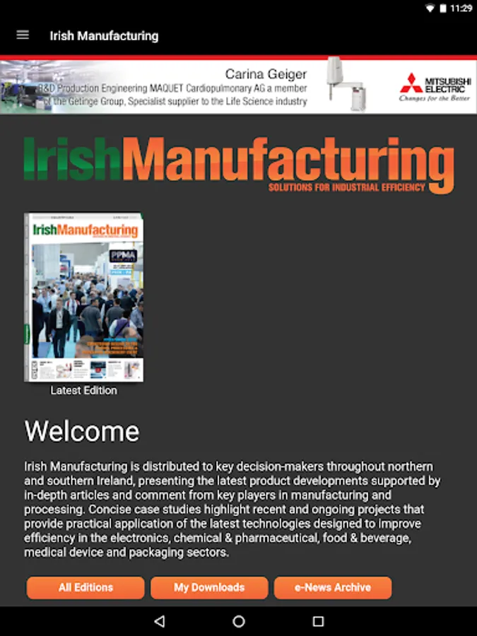 Irish Manufacturing is also available in print format and is complemented by regular e-newsletters and the connectingindustry.com online portal which carries the latest industry news, comment and technologies for the manufacturing industry.