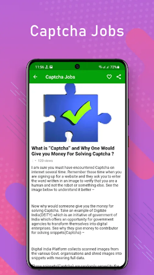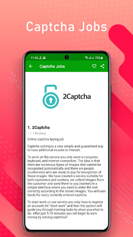 Captcha Job Guide - This is a captcha entry guide app user can earn wallet or pocket money by doing simple and easy work in part time and earn money online by captcha typing