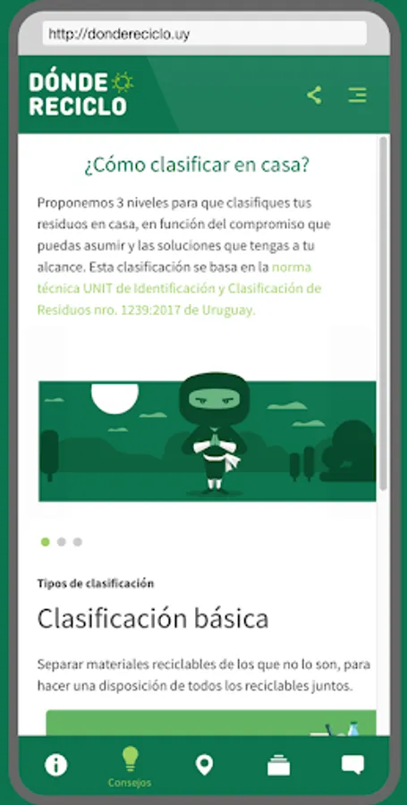 We proposed to facilitate, through a single application, access to all places, containers, devices and programs launched to receive waste or recyclable materials and packaging, as well as to facilitate some functionalities that help to locate solutions in a simple and intuitive way. that users have to give a more environmentally appropriate destination to their waste.