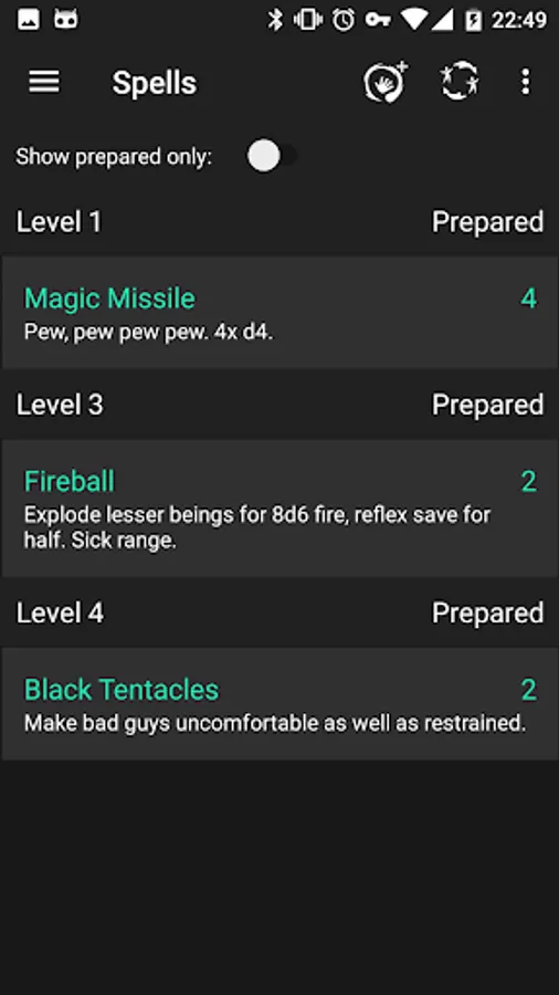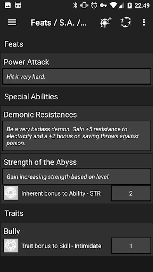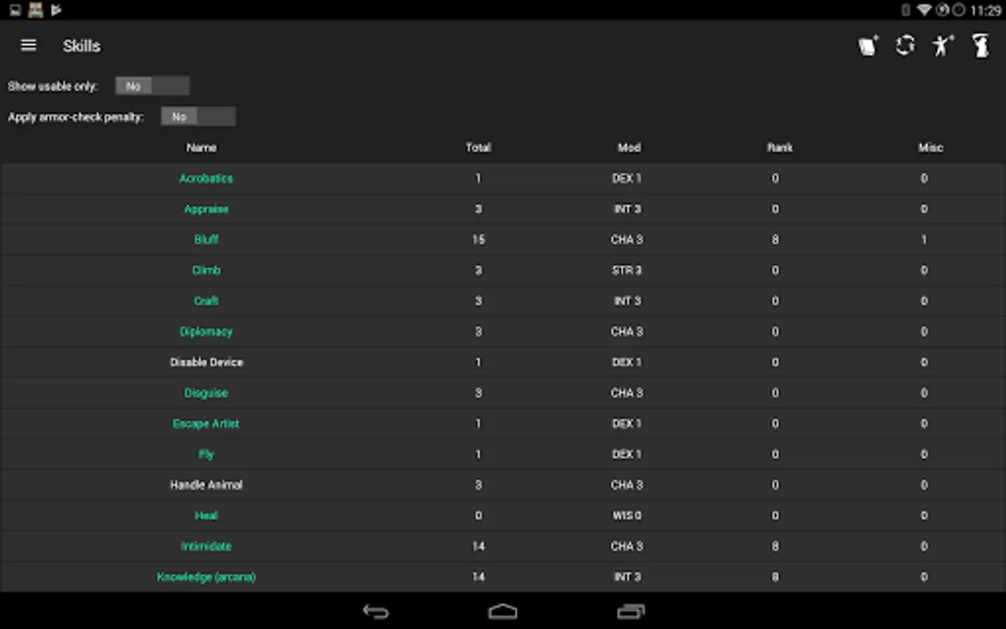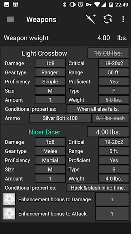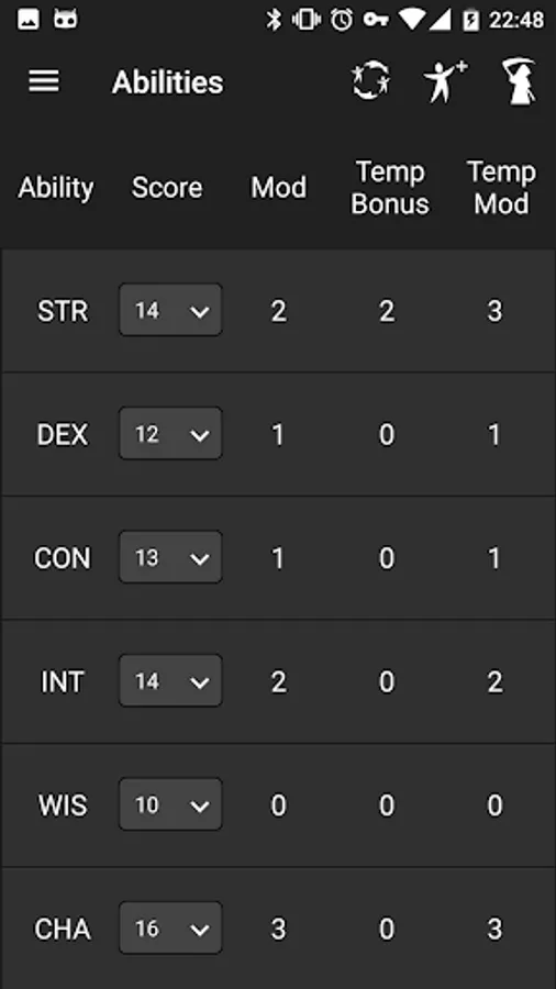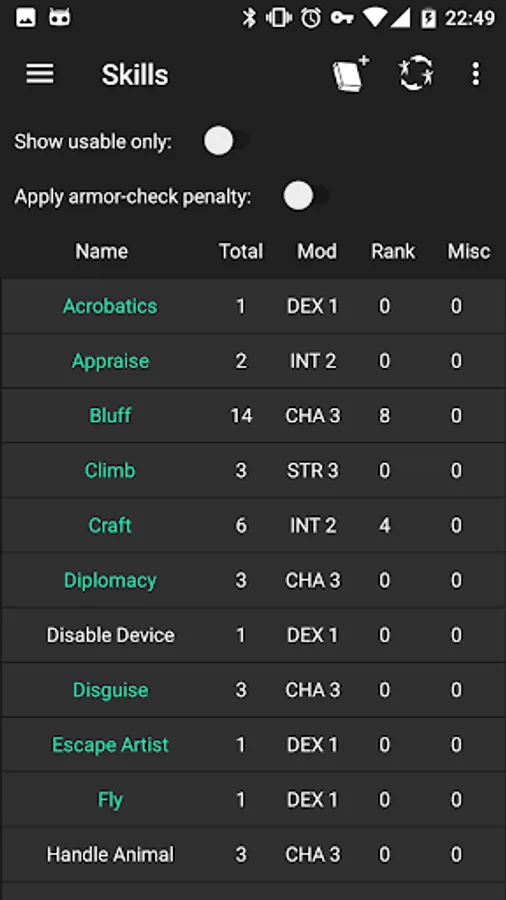 But just having the app hold your character's data is not all: We wanted to actually improve the Pathfinder experience by taking away the need to calculate and track all your numbers manually.