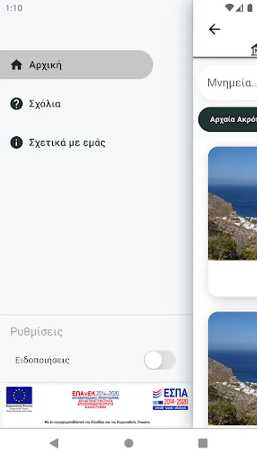 The purpose of the system is to provide the user with the ability, through a user-friendly mobile application to see enhanced information about the cultural points of interest of Sifnos.