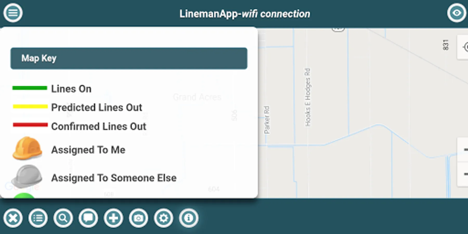 The Lineman-App is a tool for electric field workers. It allows them to see outages as well as a map of the electrical grid. It also allows them to manage their work.