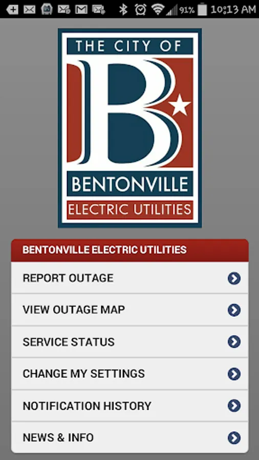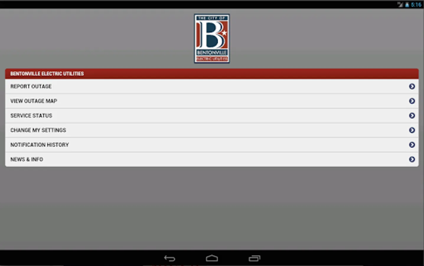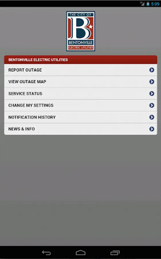 City of Bentonville Electric Utilities. View Outage Status, View Outage Maps, Report Outages, Get Important News and Information. City of Bentonville, Arkansas
