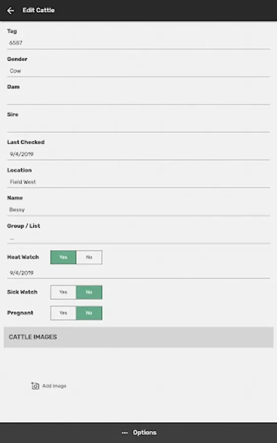 Cattle Check also has a user friendly design to help you record the work you do with your cattle such as Birth Records, Simple Genetic Recording, Pregnancy Test Recording, Heat Watch, Sick Watch, Death Loss, Purchase Records, Sale Records and much more!