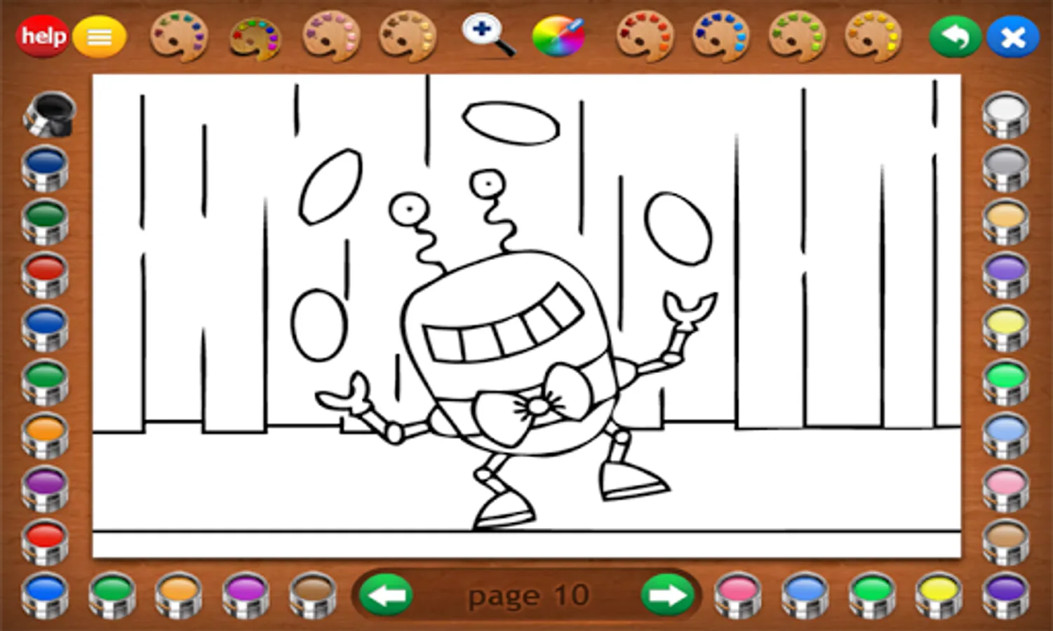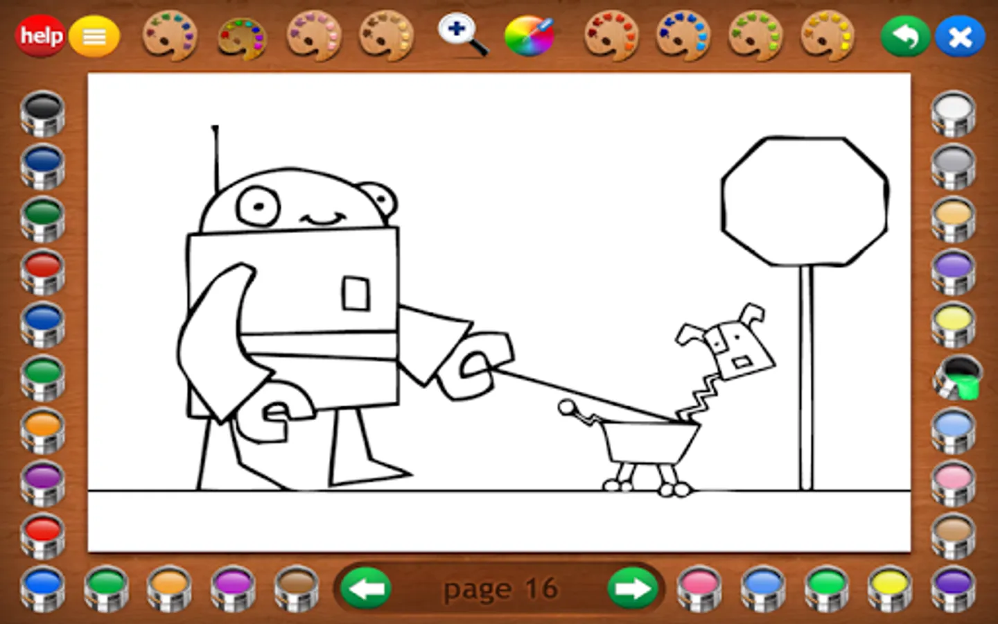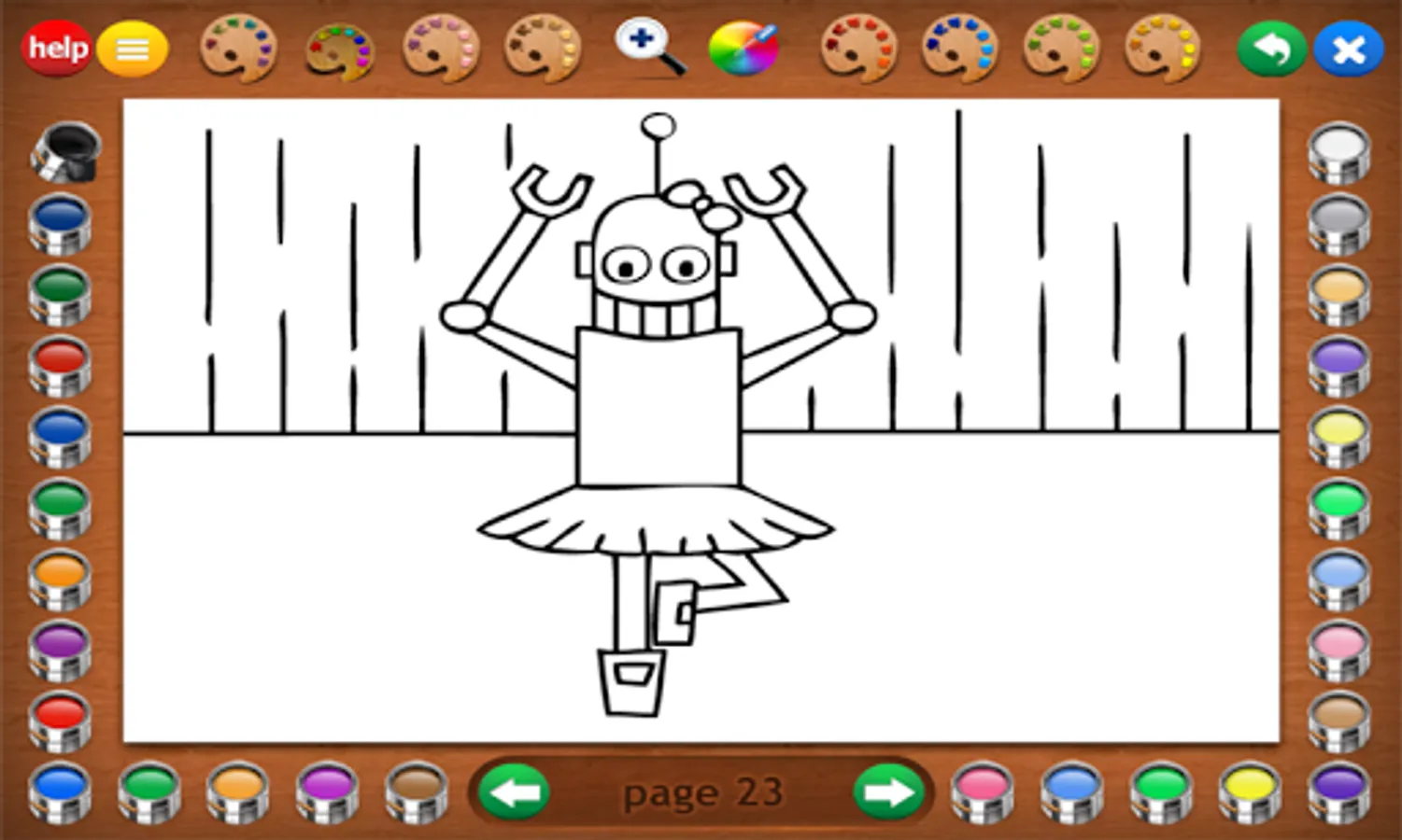 50 pages of robots! It includes a huge variety of robots that will entertain sci-fi fans for hours. These kooky robots are in scenes that depict them doing activities at home, work, and play.