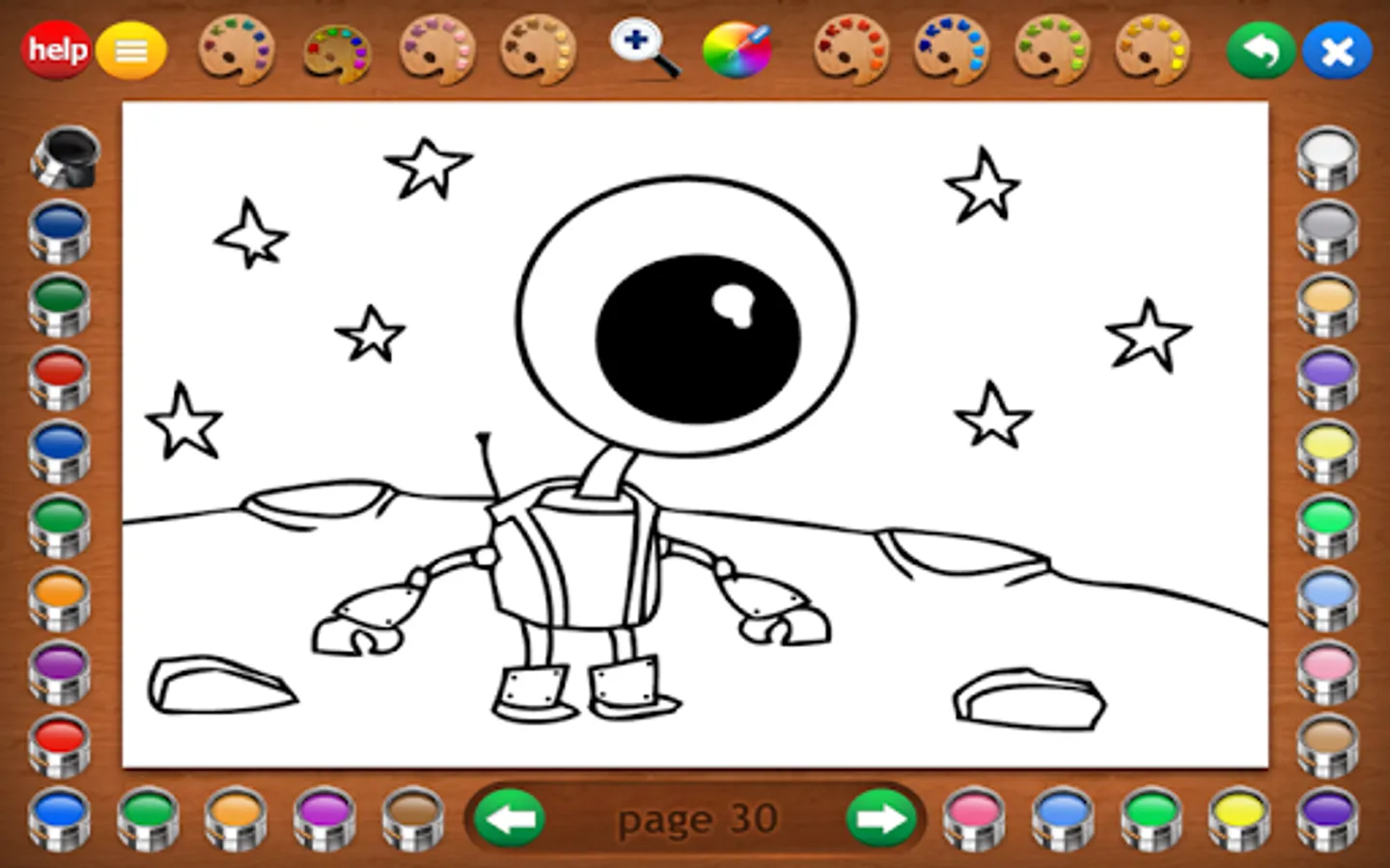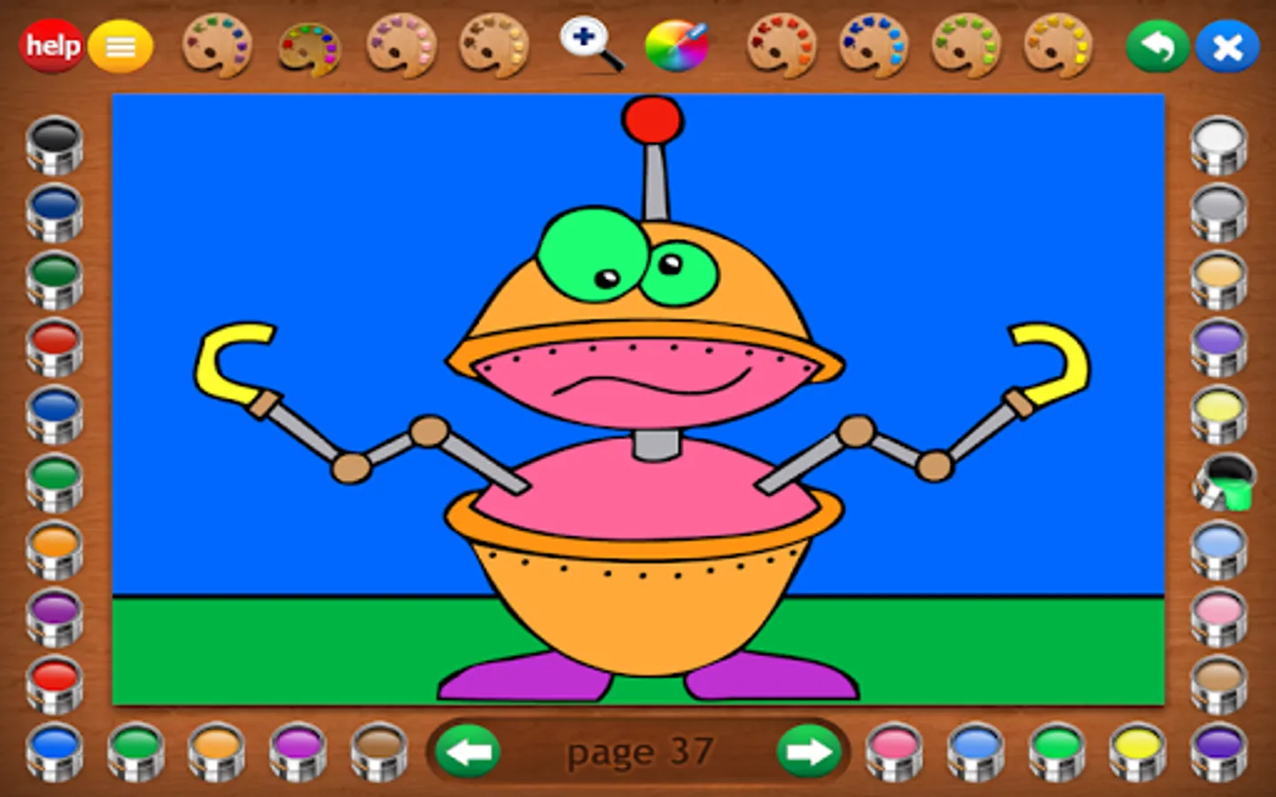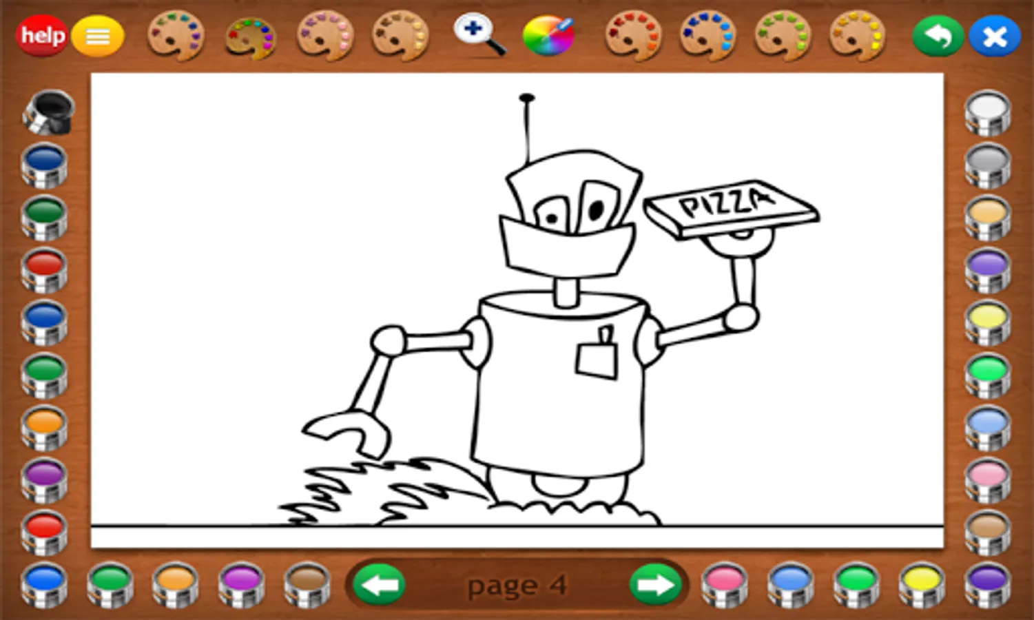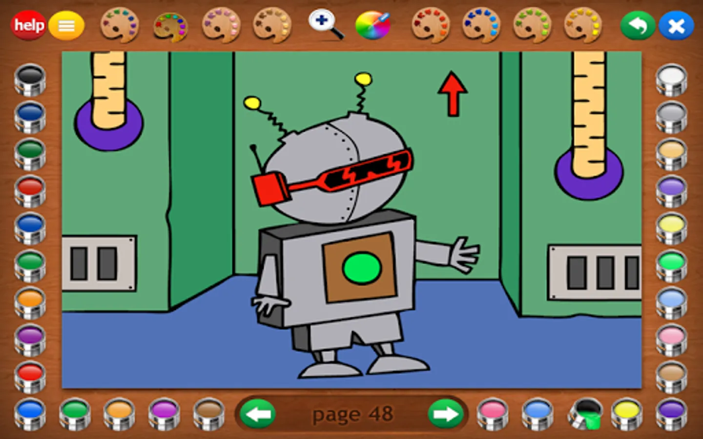 50 pages of robots! It includes a huge variety of robots that will entertain sci-fi fans for hours. These kooky robots are in scenes that depict them doing activities at home, work, and play.