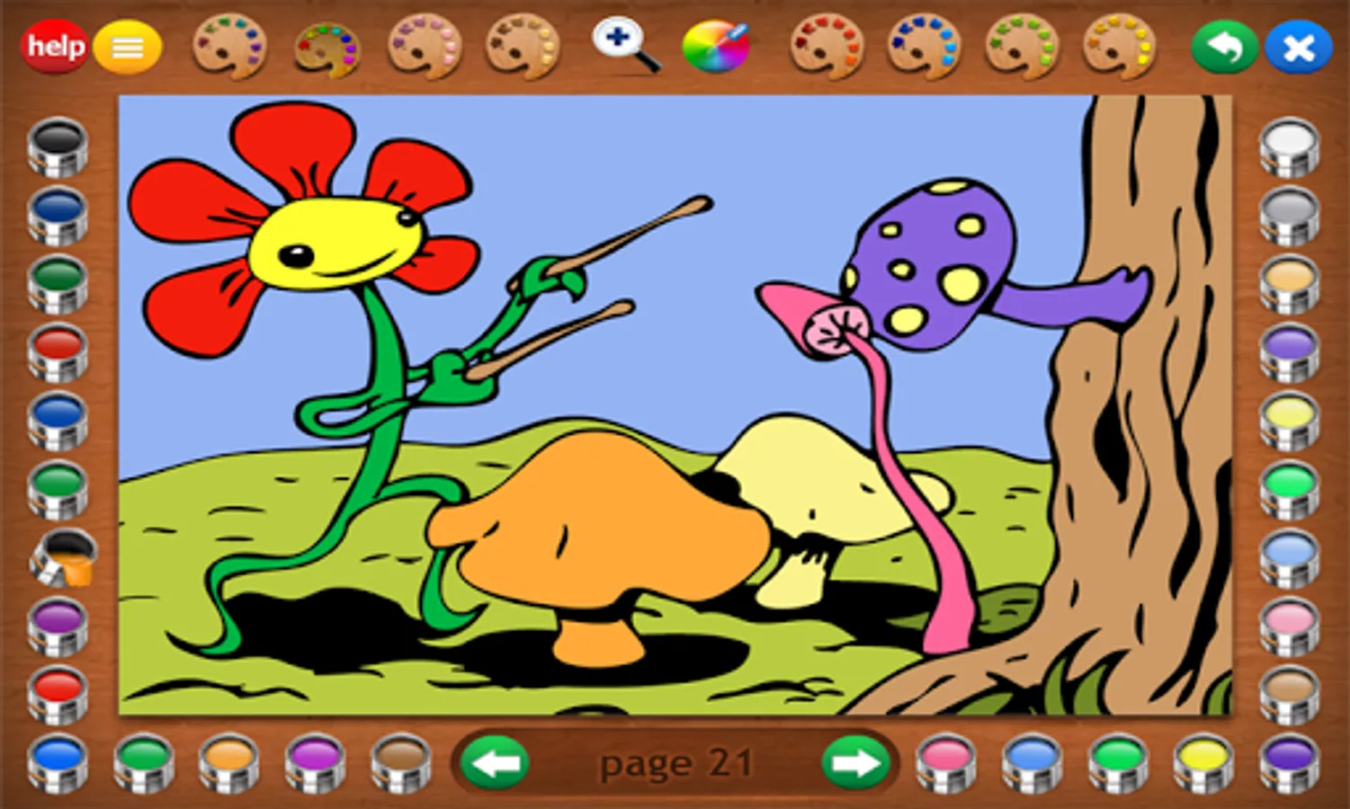 This coloring book app is filled with all kinds of silliness! These funny and lighthearted scenes will keep a smile on your child's face for hours. The 50 scenes include a rabbit on a skateboard, a cat walking a dog, a flower playing mushroom drums, and many more situations that will make you laugh!