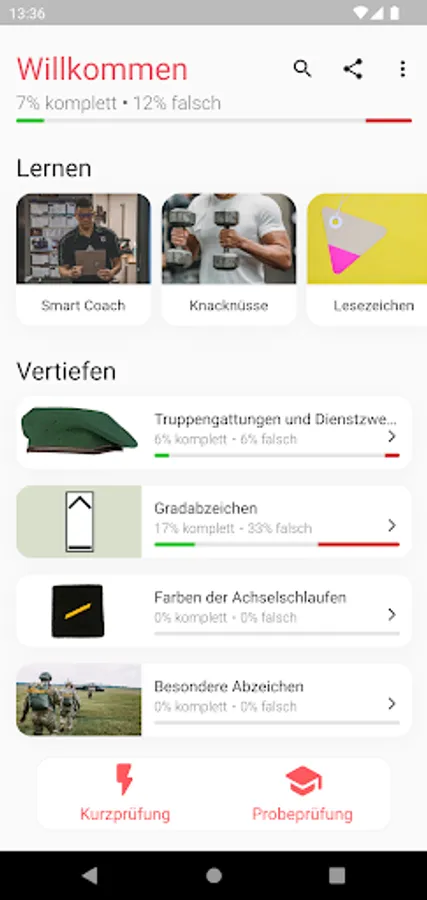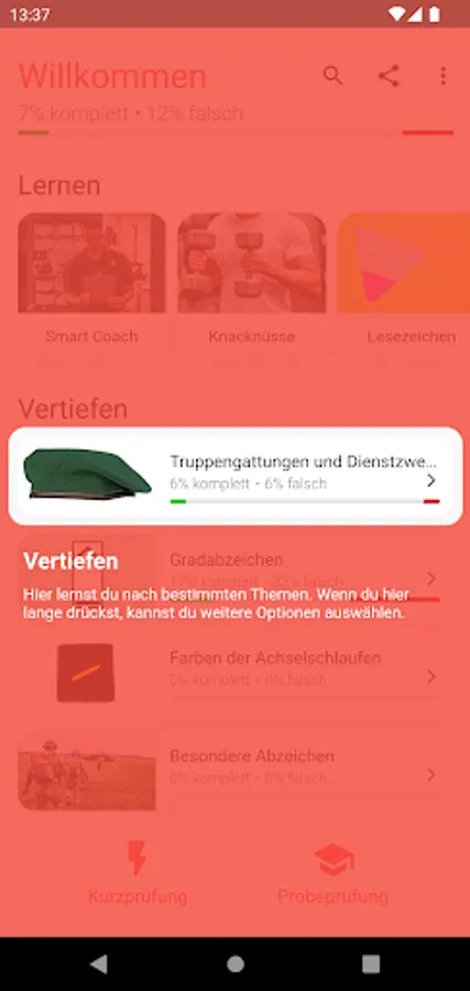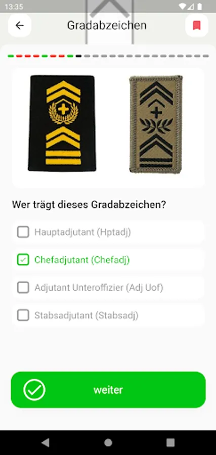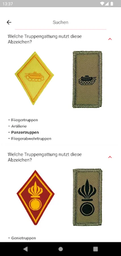 Our comprehensive learning tool covers everything you need to know about the ranks, rank insignia and ranks in the Swiss Army. Whether you are a beginner or already have basic knowledge, our easy-to-use app and interactive learning methods will help you expand your knowledge effectively.