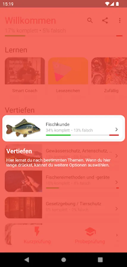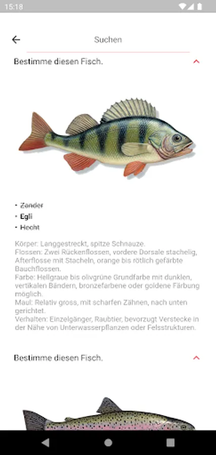 -Comprehensive learning content: The app offers detailed information on all relevant topics of the fisherman's examination in Switzerland, including fish species, hydrology, environmental protection, legislation and techniques.