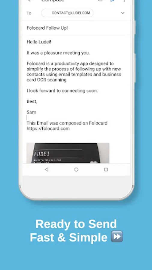 So...we made a FAST & SIMPLE follow-up app. Go from business card to email in seconds. Get 10% first-day response by enjoying the speed, recency, and frequency of Folocard.