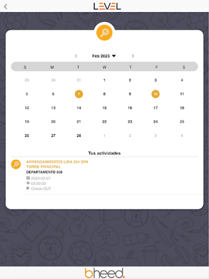 Check IN: Check-in is the process by which a receptionist confirms the arrival of a client to a unit. thus carrying out the delivery of keys, and carrying out the inspection of each of the elements of the property. The application currently contemplates virtual/assisted check-in, which is guided by telephone assistance throughout the process. Check in person, which is guided by a field technician.