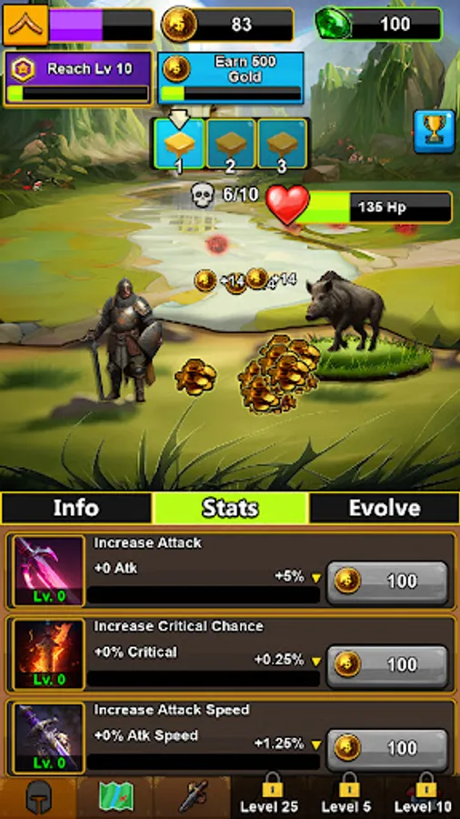Battle your way through the Worlds and power up your heroes by collecting epic weapons, armor and gear AFK!