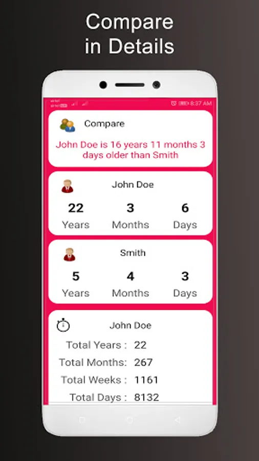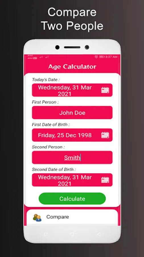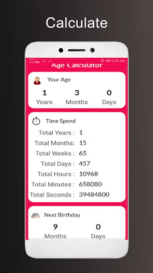 You can calculate your age by this app. This app helps in calculating the exact age.