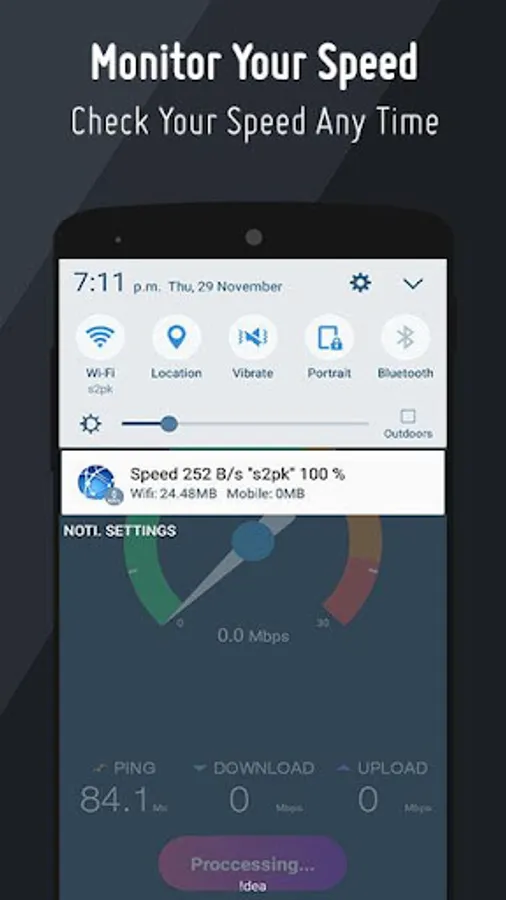 - Show Internet Downloading & Uploading Speed in Notification Bar.