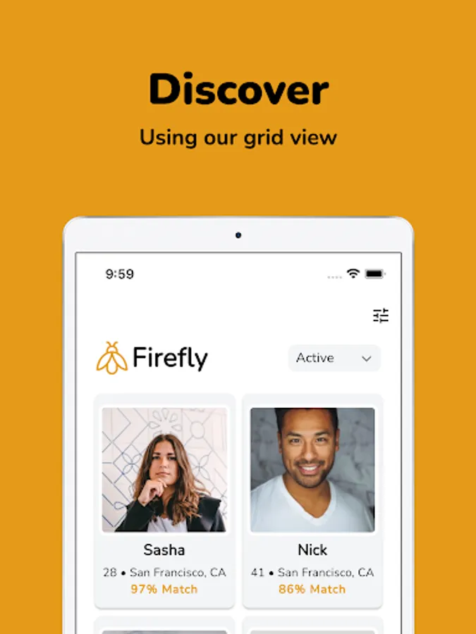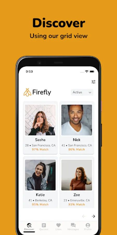 That’s where Firefly comes in. We’ve brought back a tried and true format for online dating - quizzes, match percentages, filters, and grid based search. We want you to be seen for who you are, not just the photos you curate.