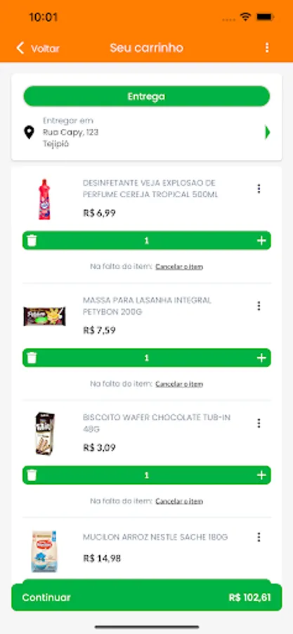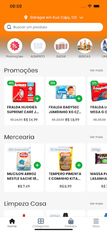 Stop carrying the weight of purchases, receive the products in the comfort of your home. Save time, transport expenses, traffic and queue stress.