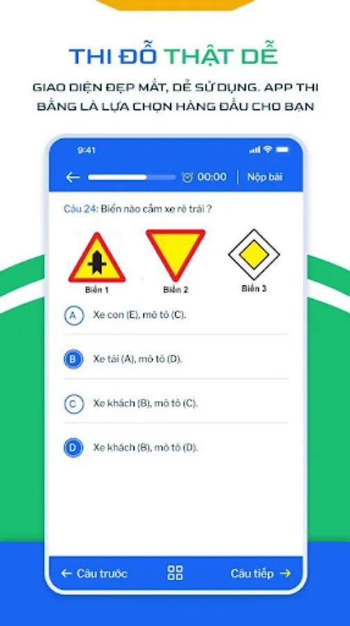 The application includes all the latest 600 questions in 2022 with 60 points for testing, granting a road motorized gplx driver's license to help you prepare for the car driver's license exam, so you can review the theory part. quickly and efficiently.