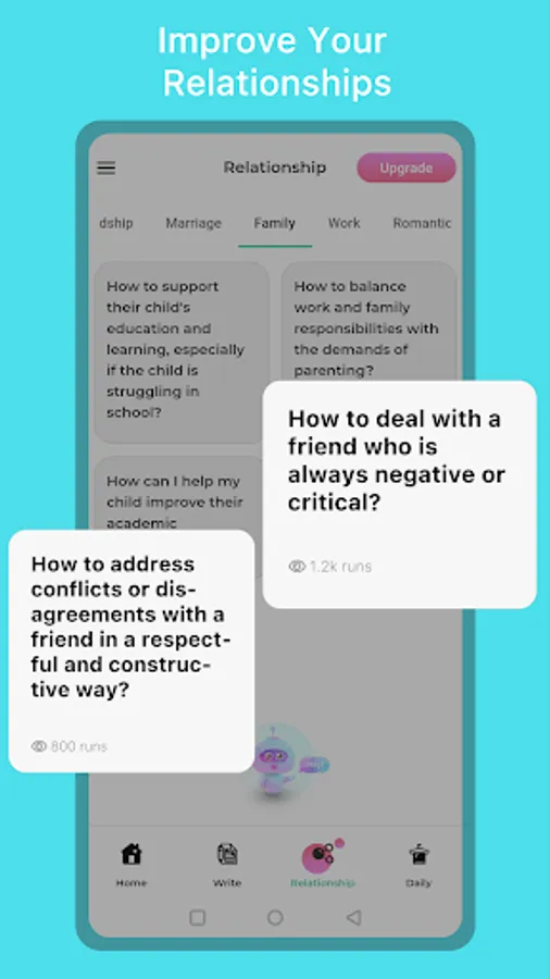 AI Friend can provide you with insightful advice and suggestions to help you build and maintain healthy relationships. Whether you have a question regarding a romantic partner, a friend, or a family member, we are here to offer guidance and support.