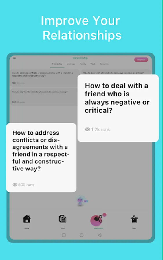 If you are struggling with personal issues and seeking relationship advice, AI Friend's chatbot can help you 24/7. Our app offers you powerful features that assist you in resolving life's issues.