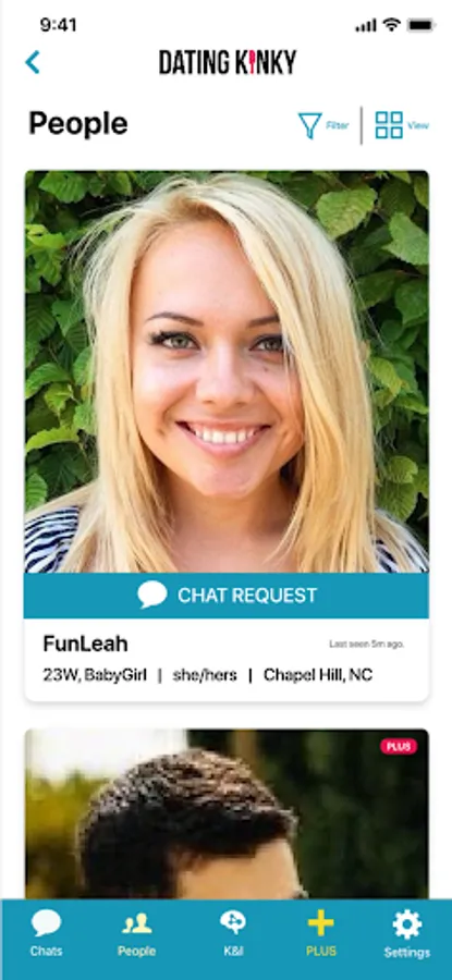 Keep in touch with all your kinky friends through the Dating Kinky Chat app! Sign in through the mobile web, connect, and start chatting. Never miss a new chat connection with our push notifications. Get to know new kinksters from all over with text, voice and video chat. Share like-minded talk, find people looking for the same things you are, and find education from around the world.