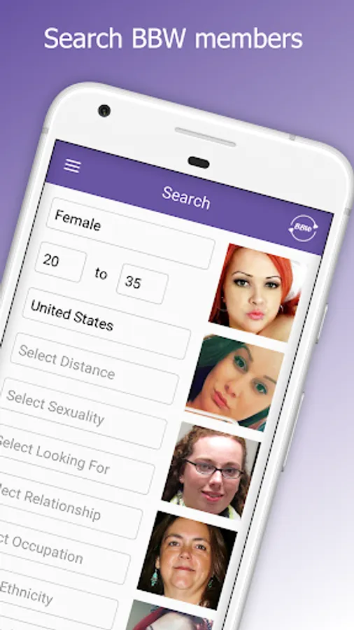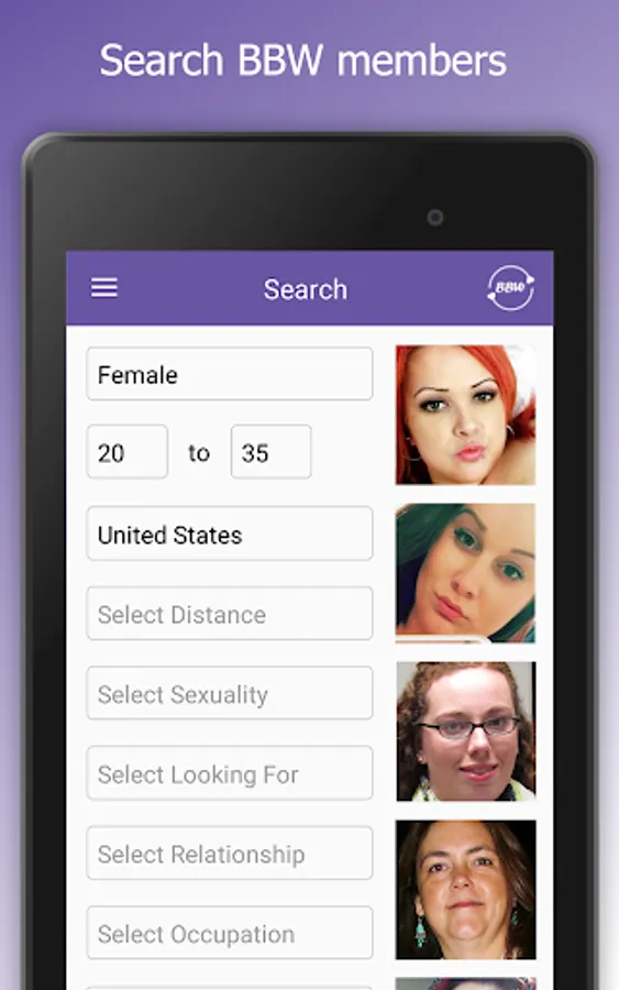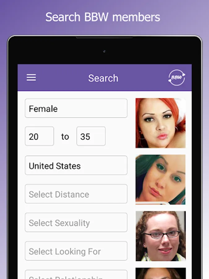 • Set your GPS location and search for other potential big beautiful women & curvy women within a nearby distance in the BBW singles community.