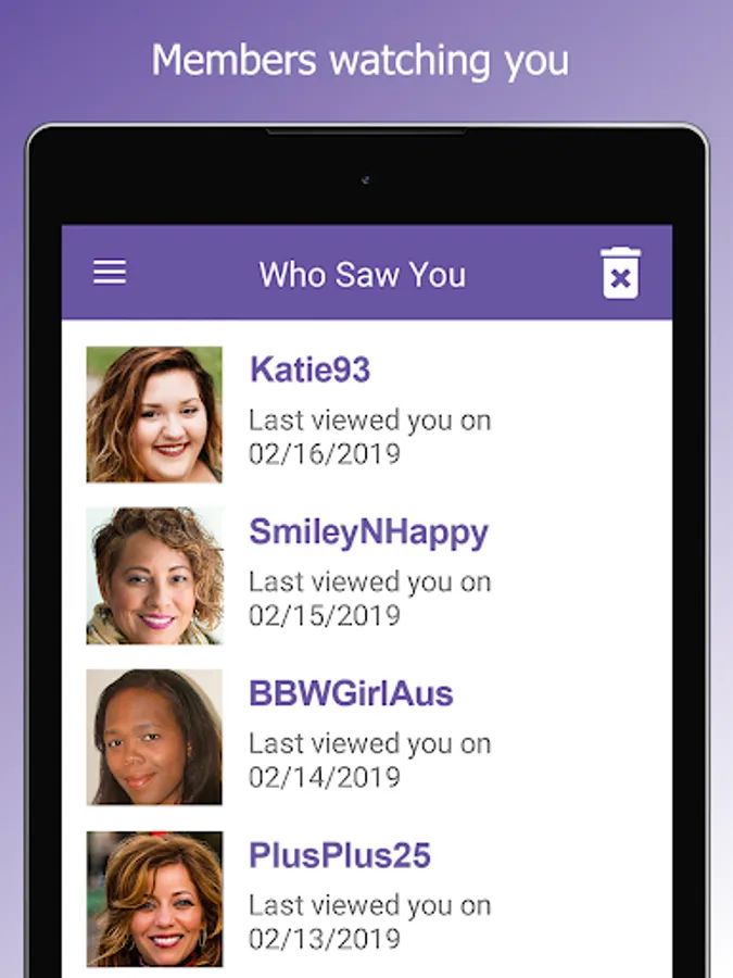 • See who has viewed your BBW dating profile last and send them a free curvy singles chat message.