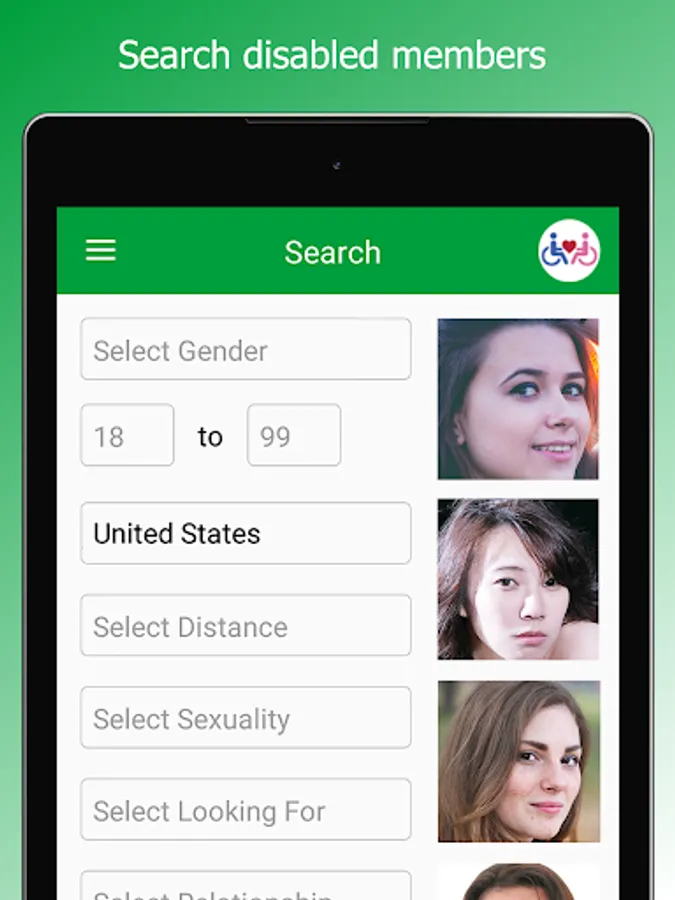 • Set your GPS location and search for other potential disabled women & disabled men within a nearby distance in the disabled community.
