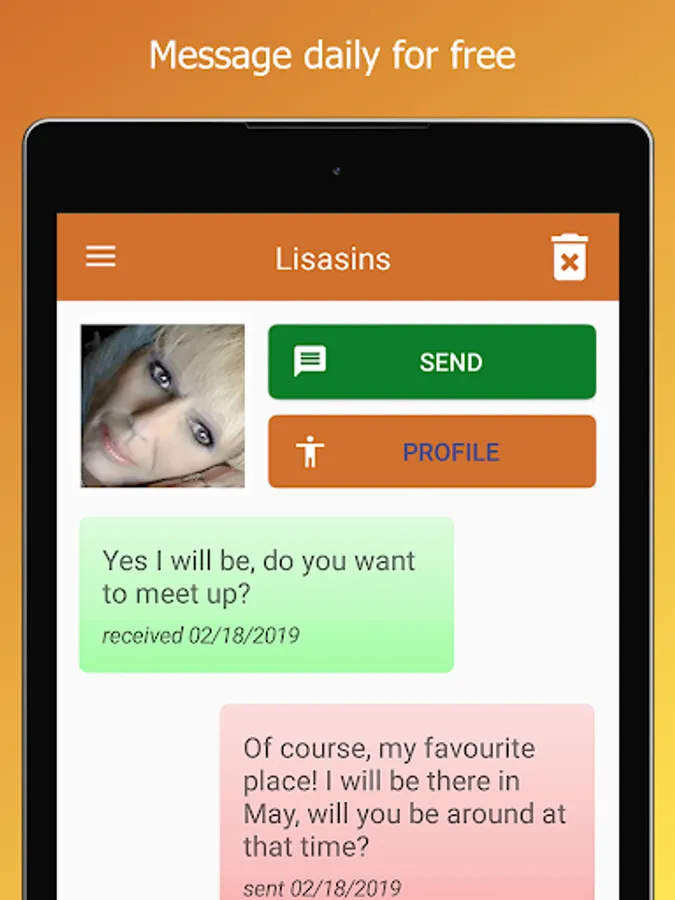 • Send unlimited senior chat messages with the goal to meet up for older woman hang out with the chance at senior love.