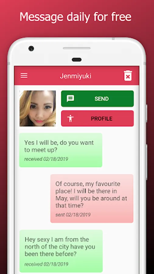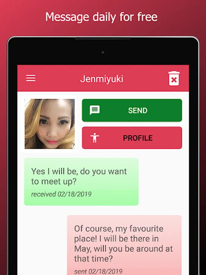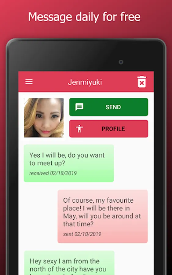 • Send unlimited Asian chat messages with the goal to meet up for an Asian hookup or hang out with other Japanese women or Thai women for instance.
