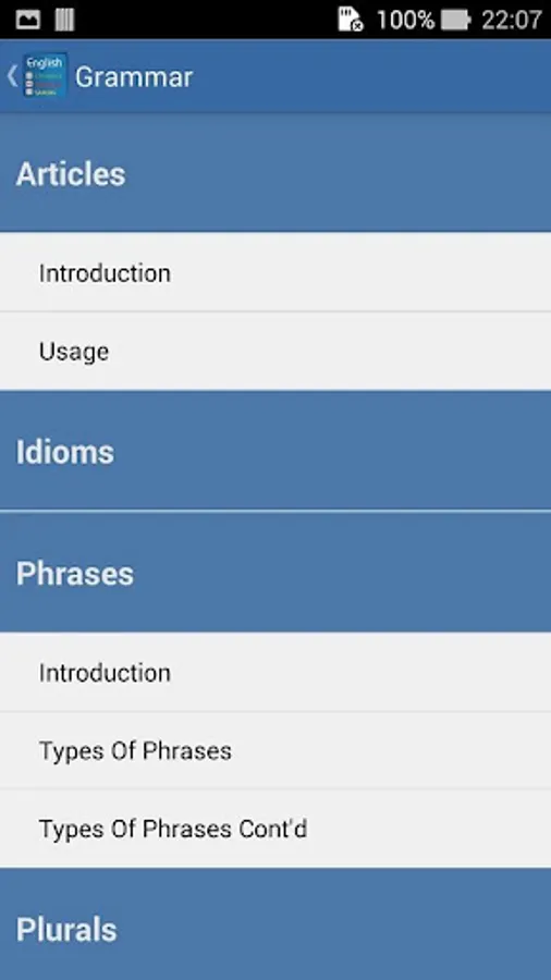 • Active Or Passive Voice, Adjectives, Adverbs, Articles, Auxiliary Verbs, Conditionals, Conjunctions, Determiners, Idioms, Interjections, Introduction, Nouns, Phrases, Prepositions, Pronouns, Quantifiers, Question Tags, Reported Speech, Tenses, Verbs.