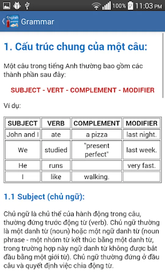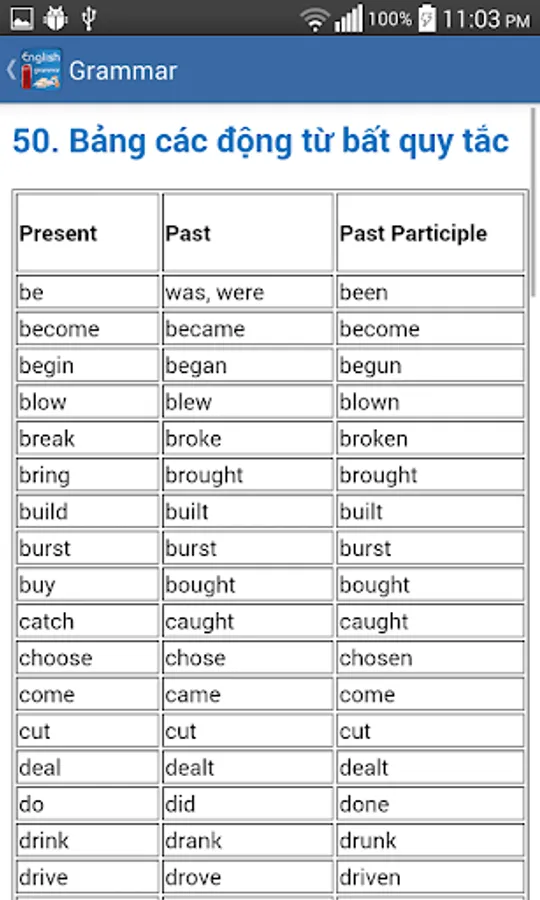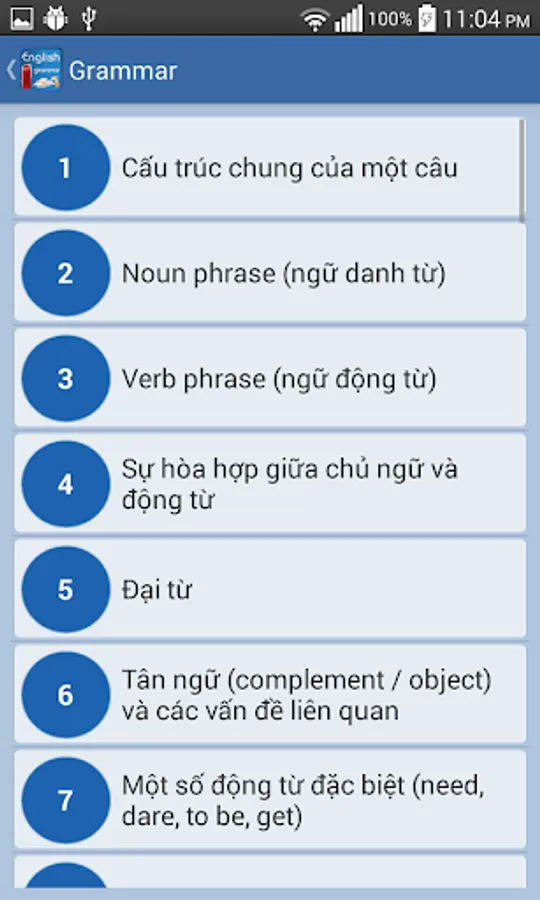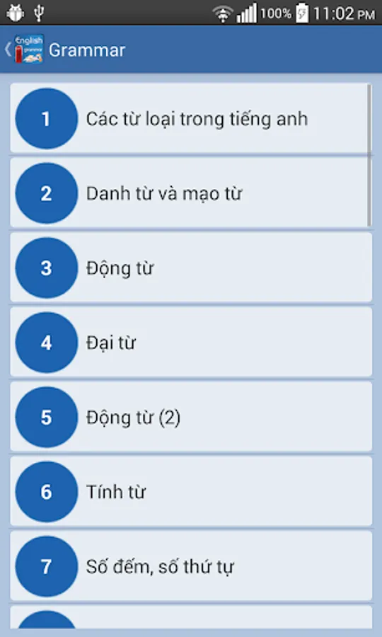 Apps to help you practice English grammar competently, application classification catalog clearly understandable and easy to remember, help you quickly review grammar knowledge inherent forgot.