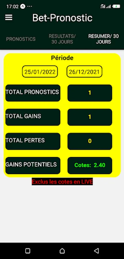 - A noté que les pronostics provenant de l'application ne sont