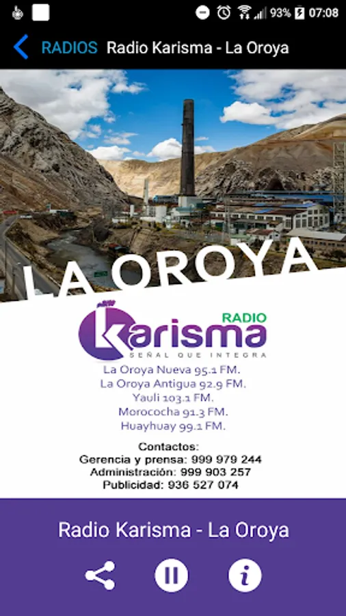 RADIO KARISMA currently has more than 10 FM radio stations in the highlands and jungle of the central region of Peru: