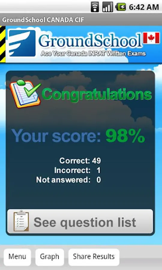 We have been providing test preparation for Transport Canada theory exams since 1997 through our CanadaPilot.com website. This app brings the same reliable and representative questions and detailed explanations to your device while maintaining the high level of usability that you’ve come to expect from our applications. This app is 100% all that you need to study to prepare for your Transport Canada INRAT theory exam.