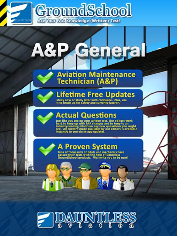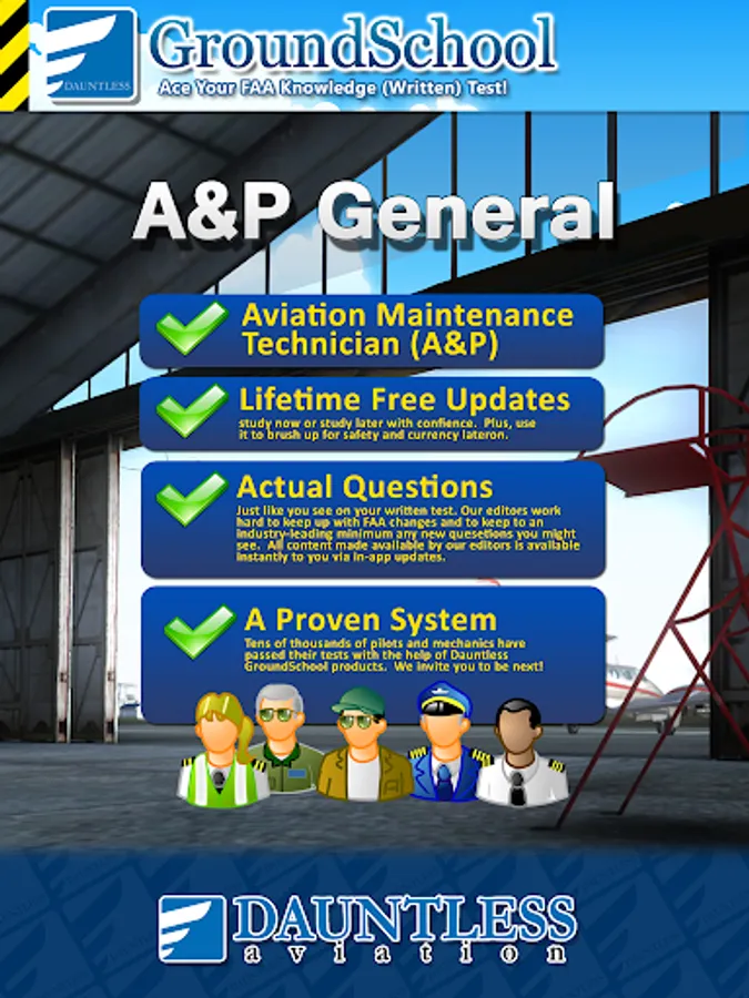 Study actual, up-to-date FAA questions and then ACE your FAA Aviation Mechanic - General written test the easy way with GroundSchool FAA Knowledge Test Preparation software by Dauntless Aviation, the trusted leader in FAA written test preparation.