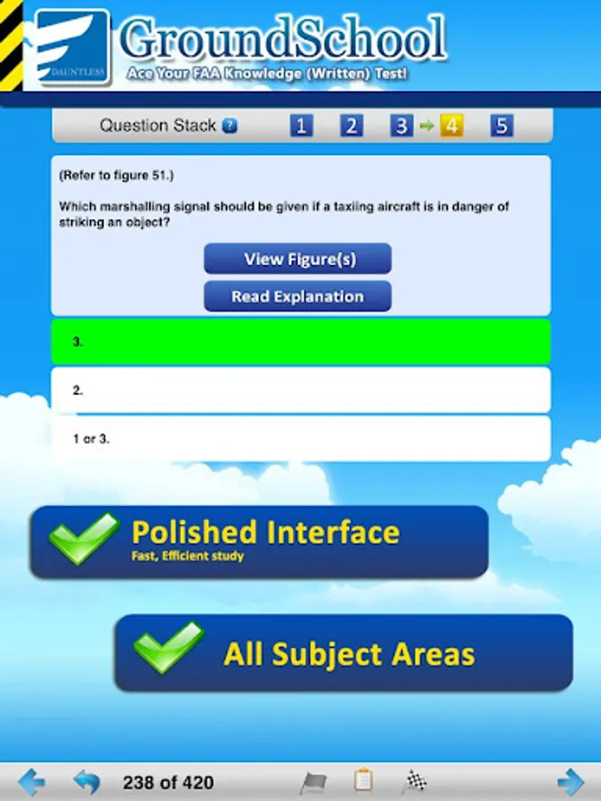 Don't be fooled by imitators! Competing apps use only the limited set of questions that the FAA publicly releases via its website - that is not enough to adequately prepare you for your test! Our GroundSchool app, on the other hand, features a much more comprehensive database (typically about 2-4 times the size of the demo FAA public one) of actual and current FAA questions that you likely can and will be asked on the actual test! This along with our detailed, professional explanations and easy to use interface are major reasons why pilots have come to trust GroundSchool.