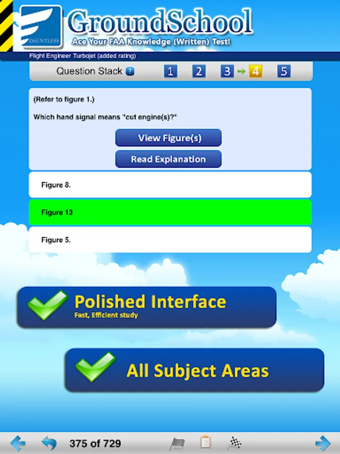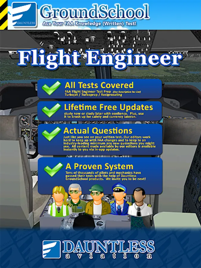 Study actual, up-to-date FAA questions and then ACE your FAA Flight Engineer written test the easy way with GroundSchool FAA Knowledge Test Preparation software by Dauntless Aviation, the trusted leader in FAA written test preparation.