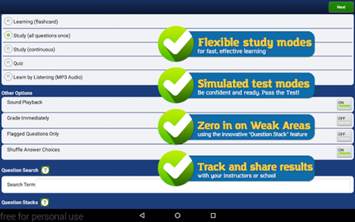 #5. Audio mode included at no extra charge! You can now listen to the questions read by a human narrator. Helps you study on