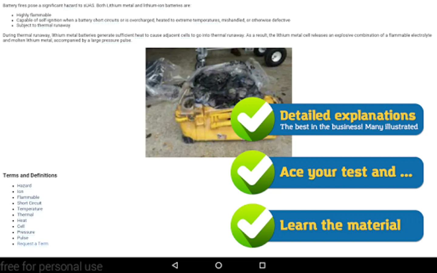 This test prep app is 100% what you need to help you pass both your initial small unmanned aerial system (sUAS/Drone) RPIC knowledge test which is now required by the new CFR 14 Part 107 FAA regulations. What's more, with its free lifetime updates, it'll also prepare you for the recurrency/recertification tests that you'll need to take down the line at no extra charge.