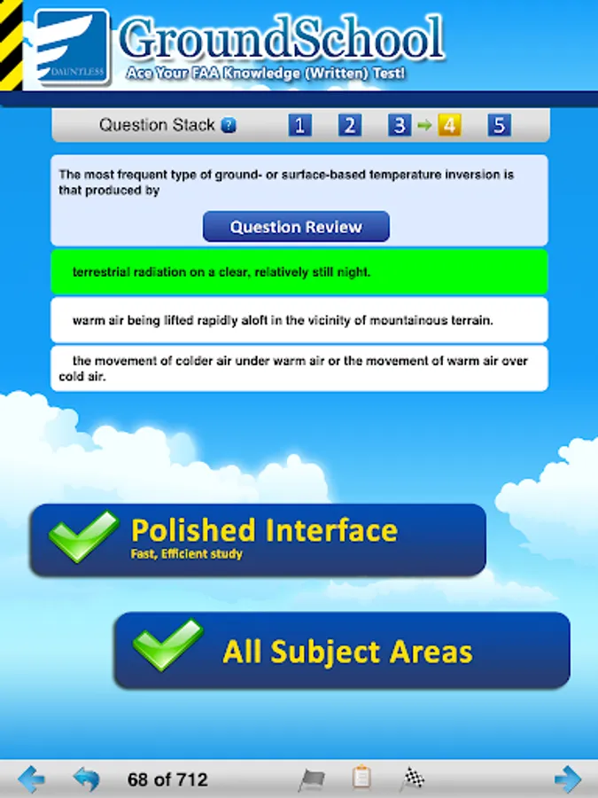 Spend less time studying and more time flying! This is the FAA Sport Pilot version of GroundSchool, our FAA knowledge (written) test preparation featuring up-to-date questions, free updates, and illustrated explanations written by a professional team of pilot examiners and instructors.