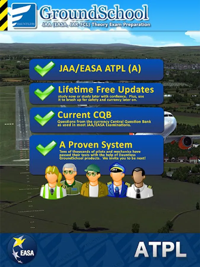 Our EASA ATPL (Airline Transport Pilot License) Airplane theory exam preparation app is the best tool to help you pass all the tests to become an airline or other professional pilot in Europe or any other of the many other countries which use a EASA/JAR-FCL syllabus.