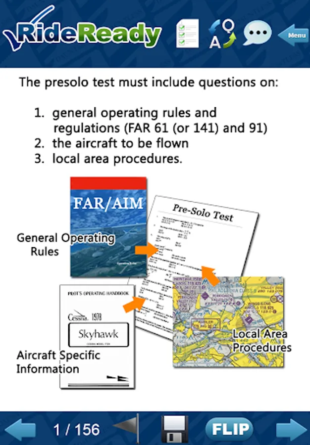 * This is NOT FAA written (knowledge) test preparation. If you want FAA written (knowledge) test preparation, check out our GroundSchool FAA line of products. Many pilots buy both RideReady and our GroundSchool-FAA apps as they work well together.