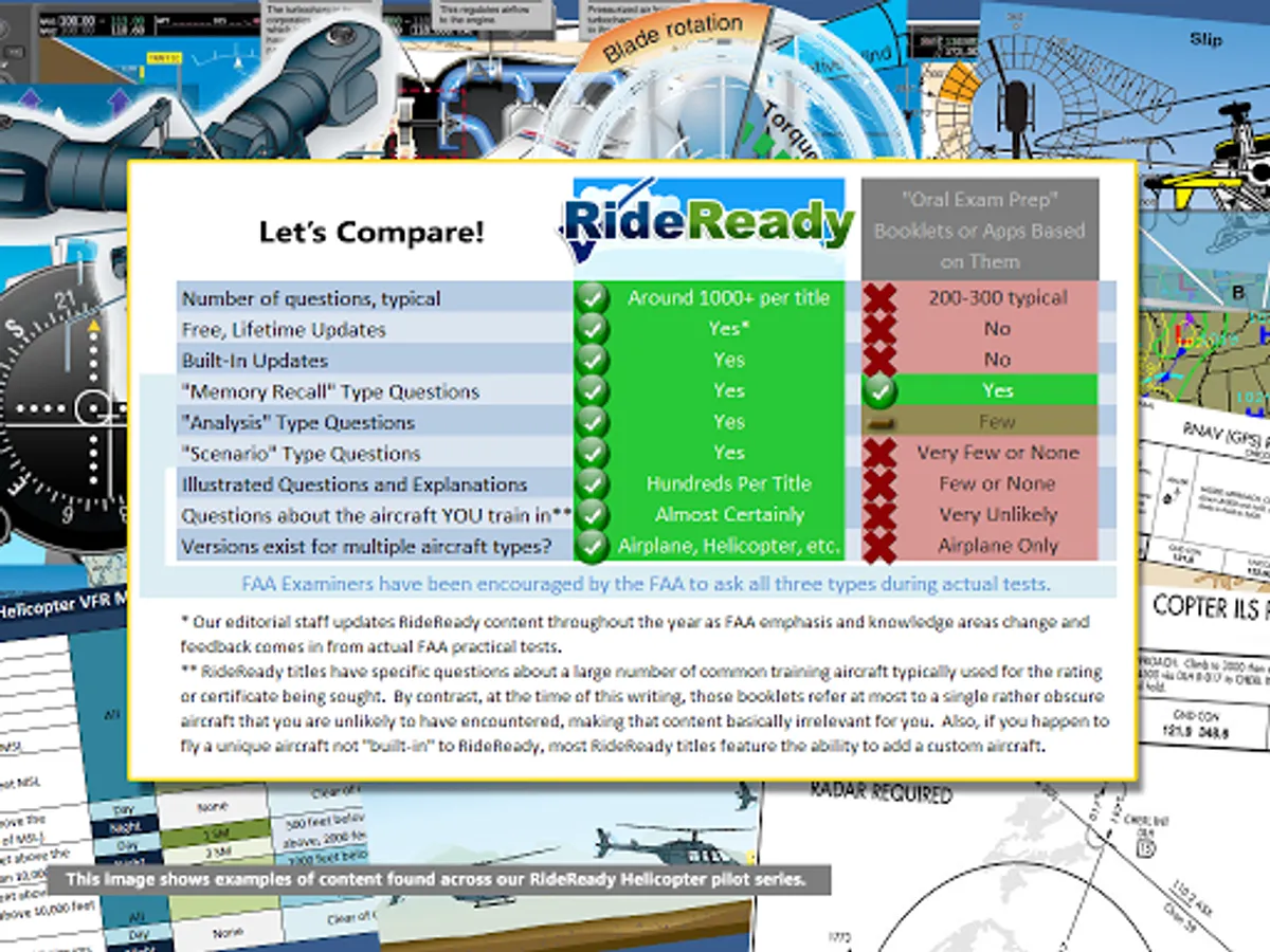 * Again, this title is for HELICOPTER PILOTS ONLY. This is NOT preparation materials for airplane, glider, gyroplane, hot air balloon, or other pilots. We have other RideReady titles for different aircraft types, but this one is for HELICOPTER PILOTS ONLY as it contains much information particular to helicopter / rotary-wing operations.