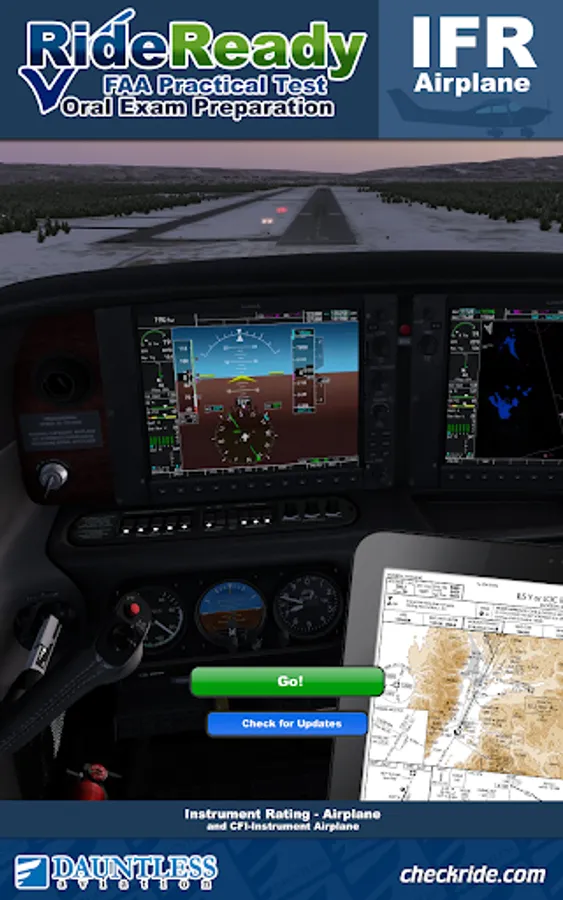 RideReady - IFR Airplane will help make you confident and ready for your FAA Instrument Rating Airplane Practical Test / Checkride (that combination of flight test and oral quizzing that you will need to pass to receive an instrument rating) and allow you to impress the examiner with your knowledge of relevant knowledge areas as per the Practical Test Standards and current FAA practices and recommendations.