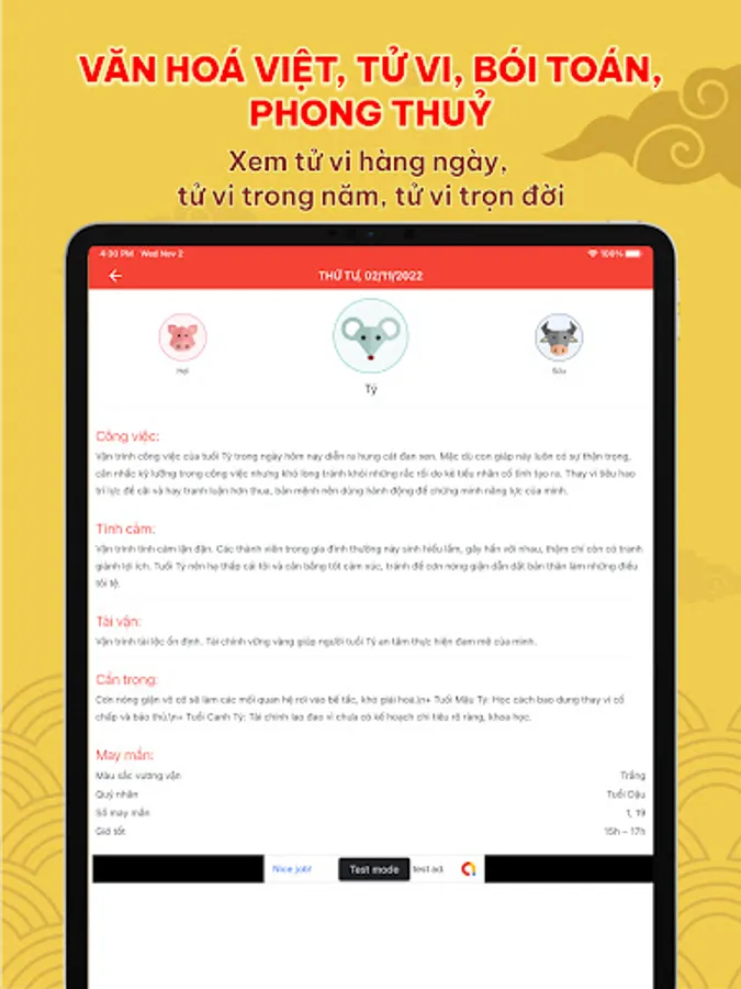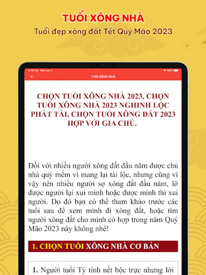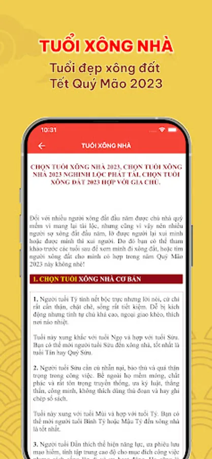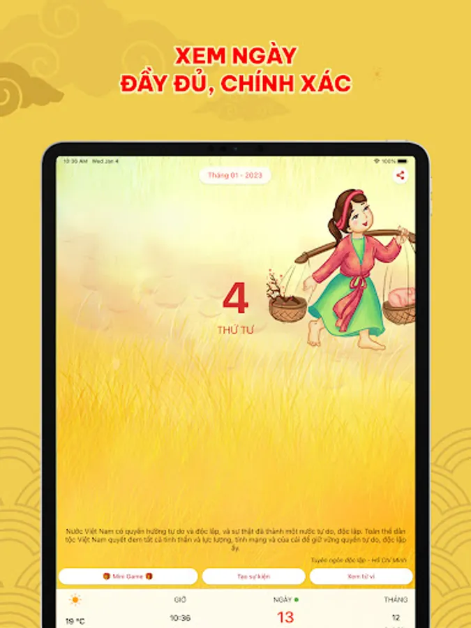 * Vietnamese cultural content (In the application of Van Nien Calendar - Lunar Calendar 2023):