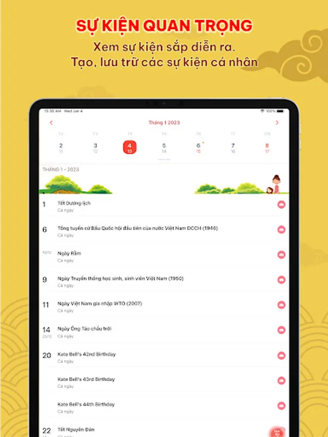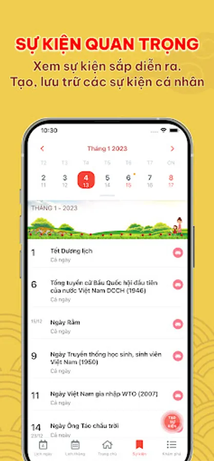* Event management (In the application Van Nien Calendar - Lunar Calendar 2023):