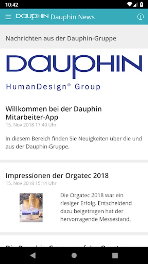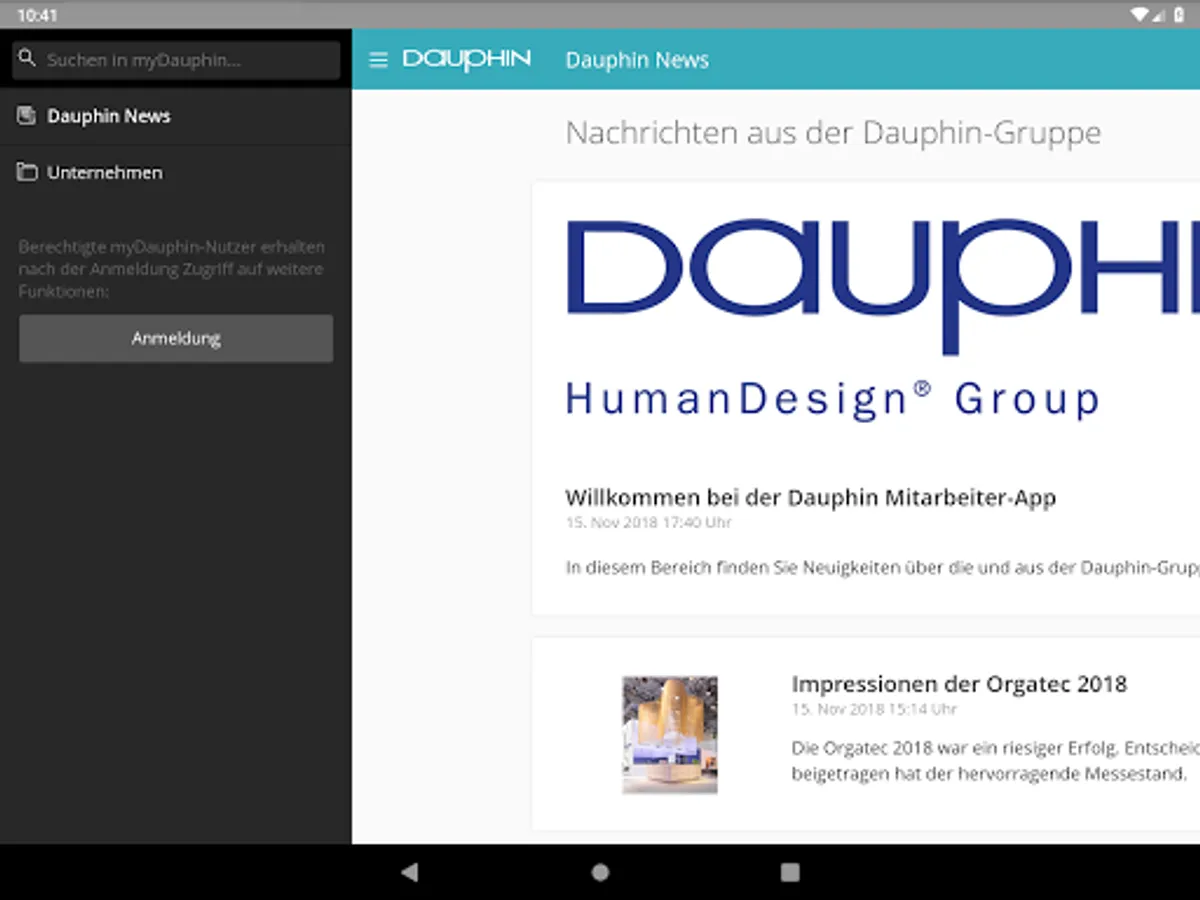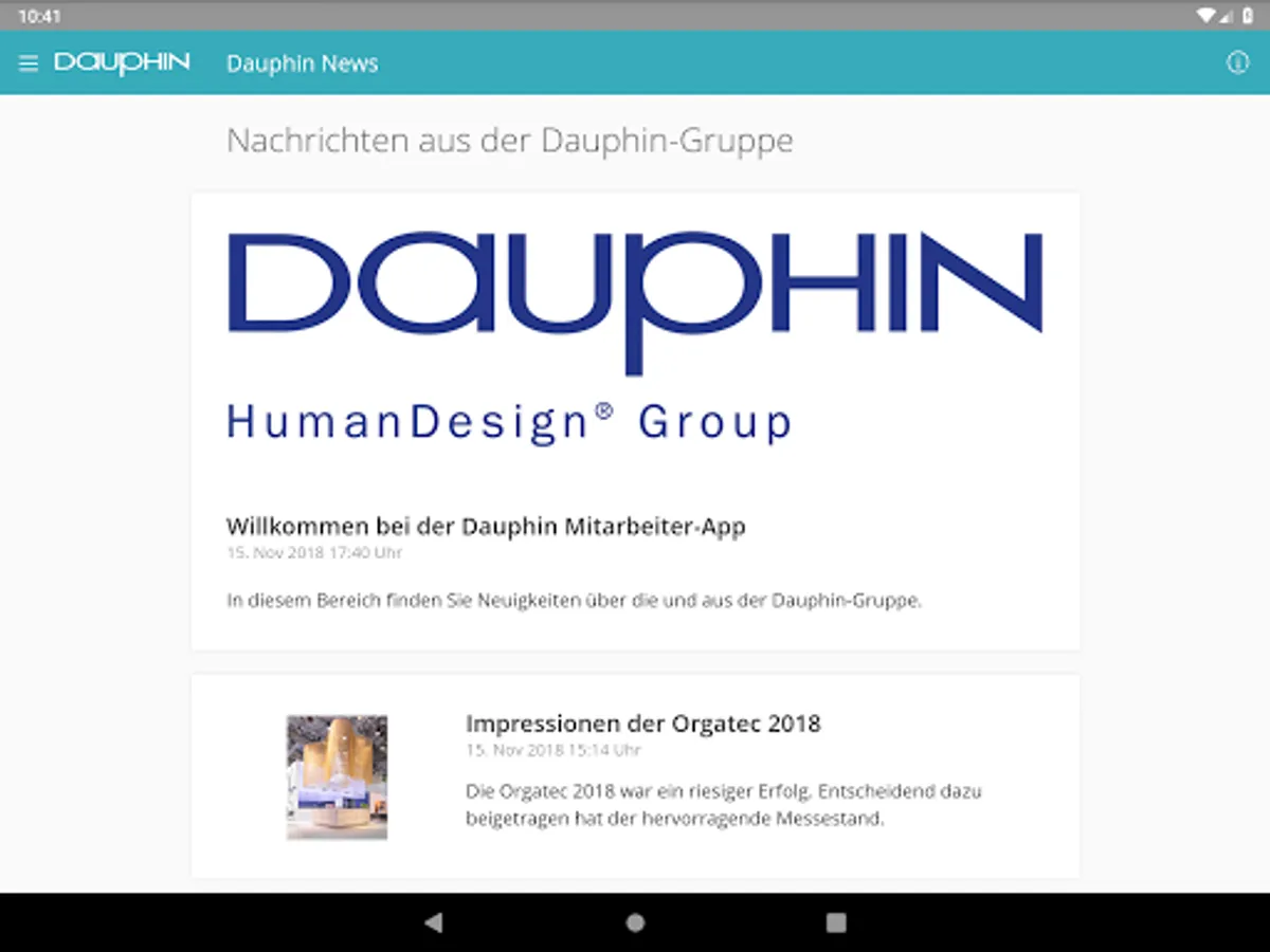 MyDauphin is the communication app for partners, interested parties and employees of the Dauphin Group. It provides news about the company with its brands Dauphin, Bosse, Züco, and Dauphin Home.